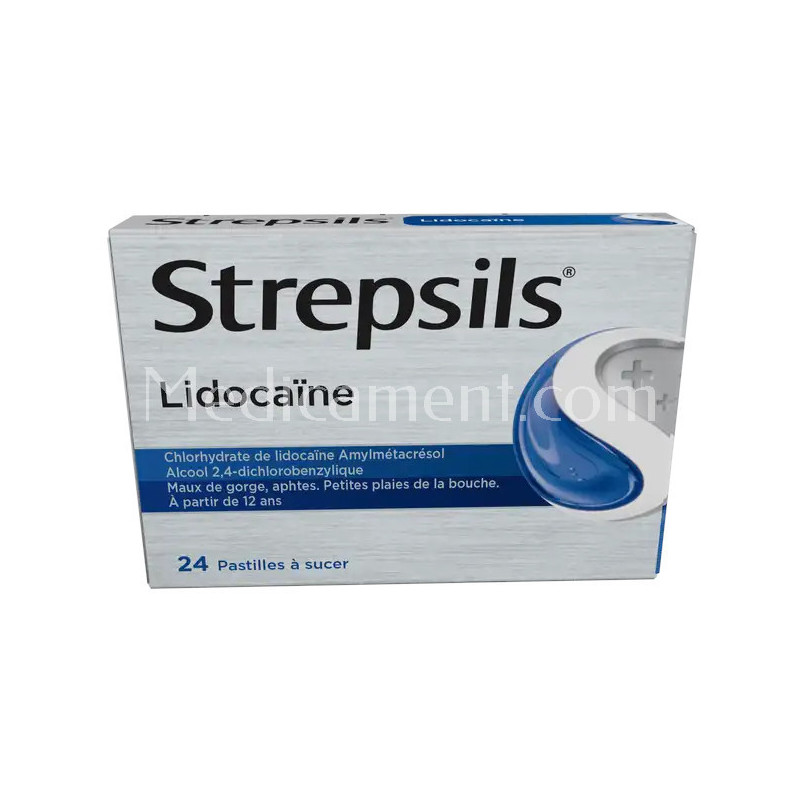 Strepsils Lidocaïne est un médicament qui contient un anesthésique local (le chlorhydrate de lidocaïne) et deux antiseptiques locaux (l’amylmétacrésol et l’alcool 2,4-dichlorobenzylique) pour soulager les maux de gorge peu intenses sans fièvre, aphtes et petites plaies de la bouche chez l'adulte et l'enfant de plus de 12 ans.