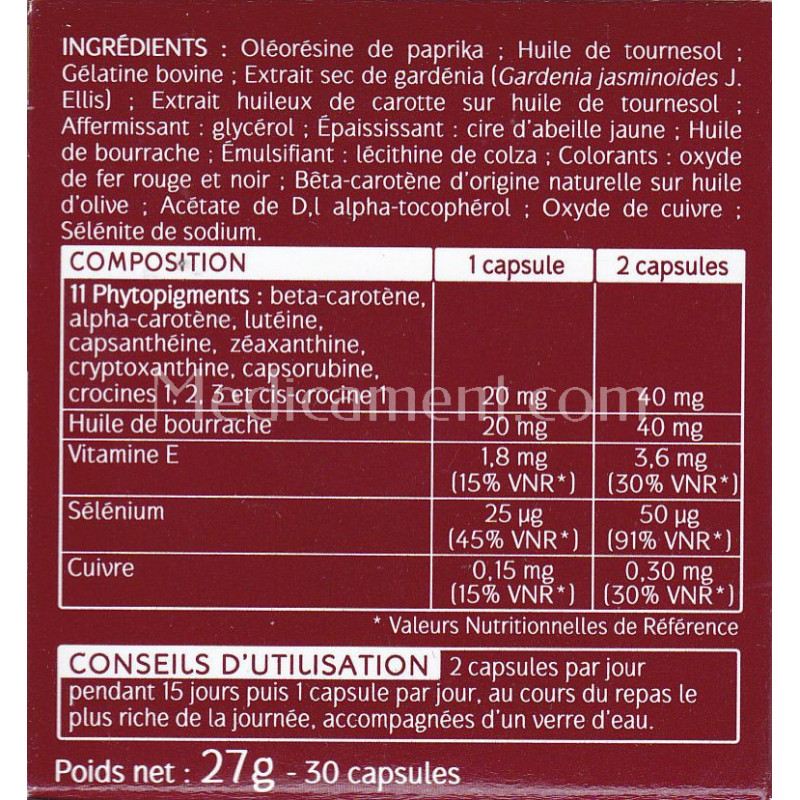 Doriance Autobronzant à l'extrait de gardénia permet de donner à la peau une mine ensoleillée, même en hiver sans exposition au soleil. Sa formule contient 11 phytopigments d'origine végétale et du cuivre. Ces actifs végétaux proviennent du Gardénia, du Paprika Capsicum annuum et d'une algue Dunaliella salina.