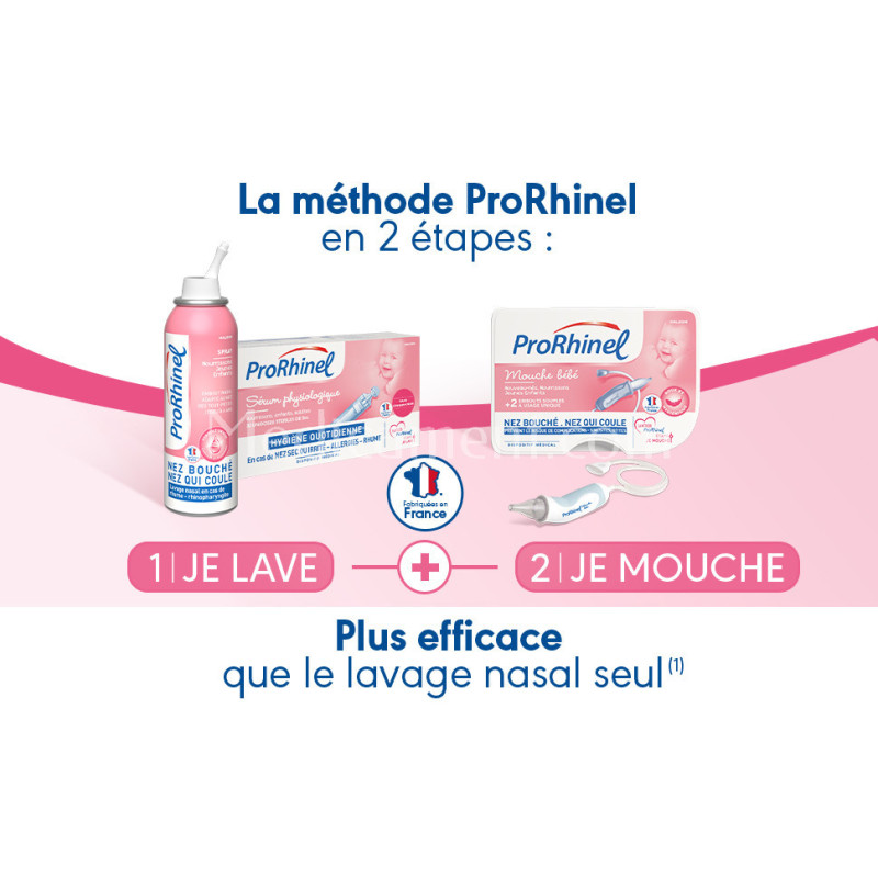 ProRhinel Mouche bébé aide à dégager le nez de votre bébé en évacuant en douceur les sécrétions nasales. L'évacuation des sécrétions nasales permet de prévenir le risque de complication du rhume tel que les infections de l'oreille (otites), les infections des sinus (sinusites) ou la toux. Le mouche bébé améliore aussi la qualité de sommeil de bébé au cours d'un rhume.