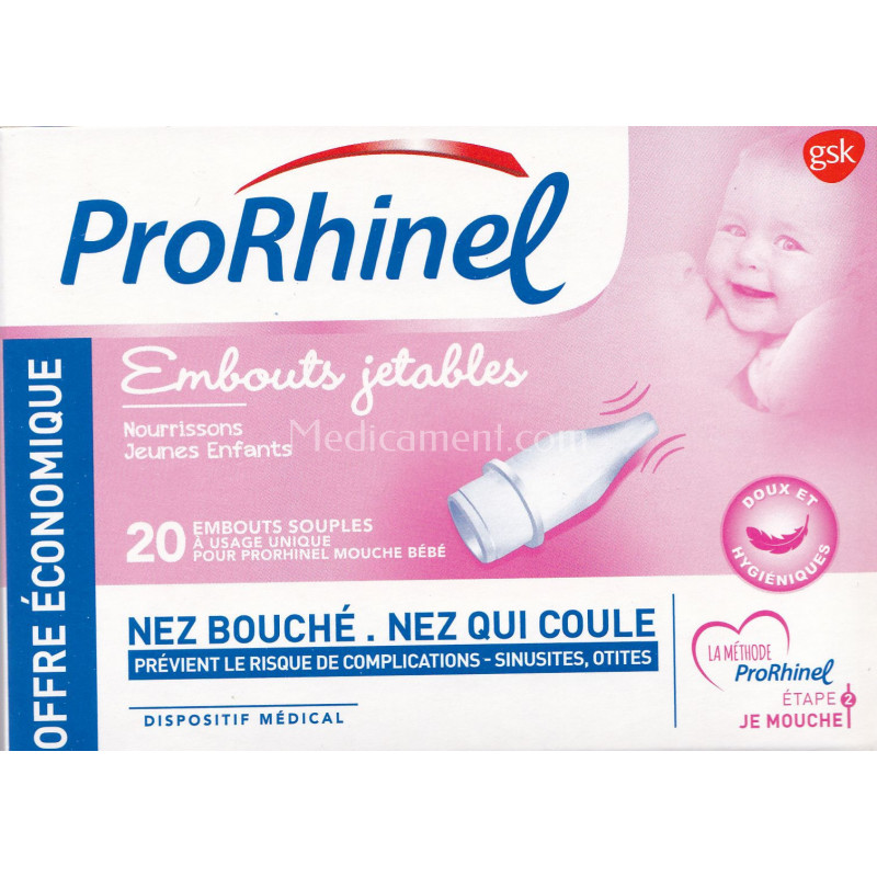 Le mouchage est recommandé lorsque votre bébé a le nez encombré, aussi souvent que nécessaire, notamment avant les repas et avant d'endormir votre bébé. ProRhinel Mouche bébé et ProRhinel embouts ont été conçus pour dégager le nez de votre bébé en évacuant en douceur les sécrétions nasales. Ces embouts souples sont parfaitement adaptés au nez de votre bébé. Chaque embout, sous emballage individuel, contient un filtre absorbant qui retient le mucus et assure ainsi une bonne hygiène.