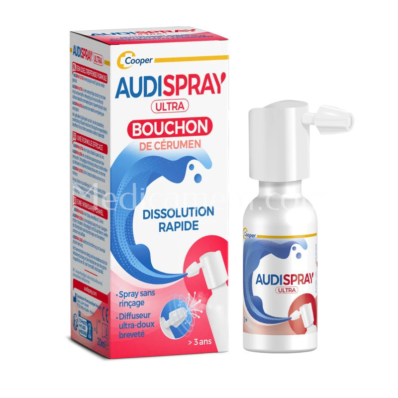 Audispray Ultra est une solution aqueuse à base de deux tensio-actifs qui permet de traiter en douceur un bouchon de cérumen formé ou en formation, idéal à domicile ou avant une visite chez un spécialiste. Sa formule va permettre de détruire et dissoudre les bouchons ou amas de cérumen.