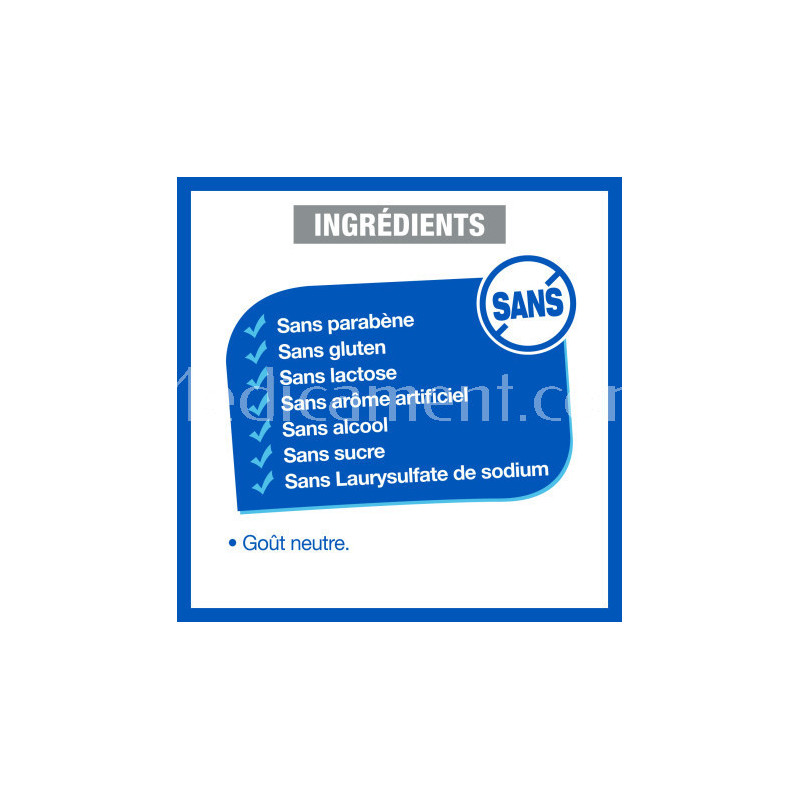 Sans arôme artificiel, gluten, lactose, parabènes, Laurylsulfate de sodium ou OGM.
