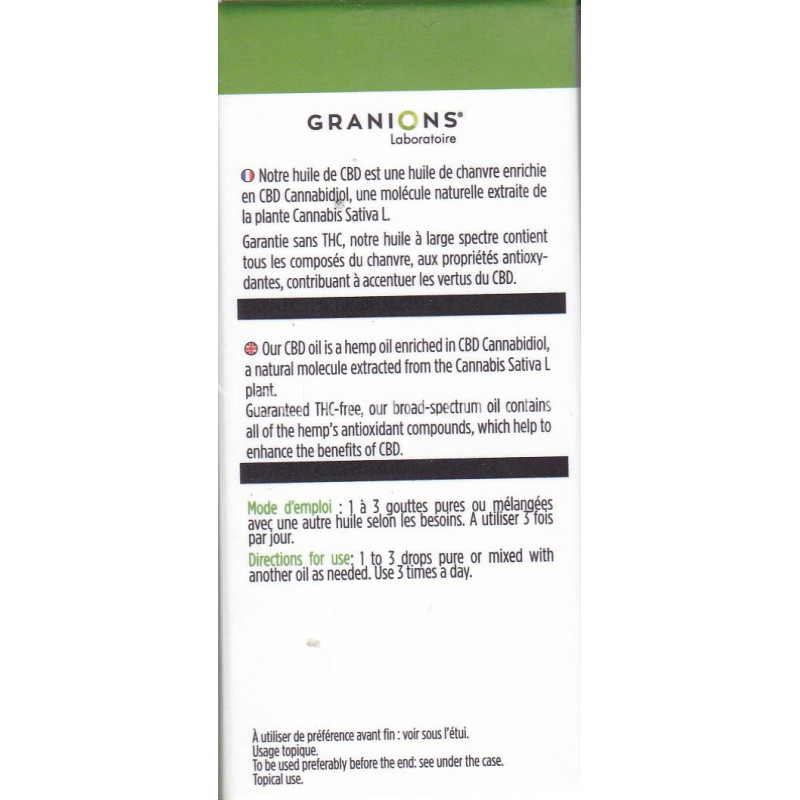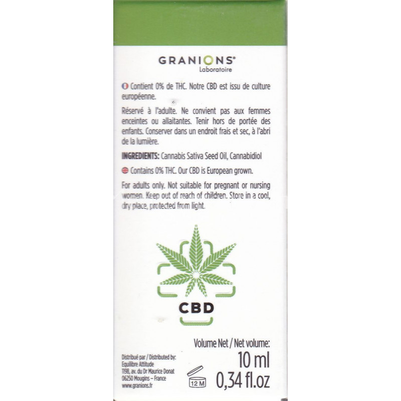 0 % de THC, CBD issu de culture européenne.