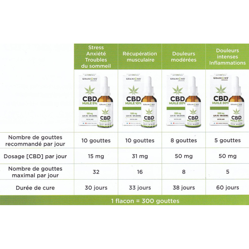Ne pas dépasser 160 mg de CBD par jour. Tenir hors de portée des enfants.