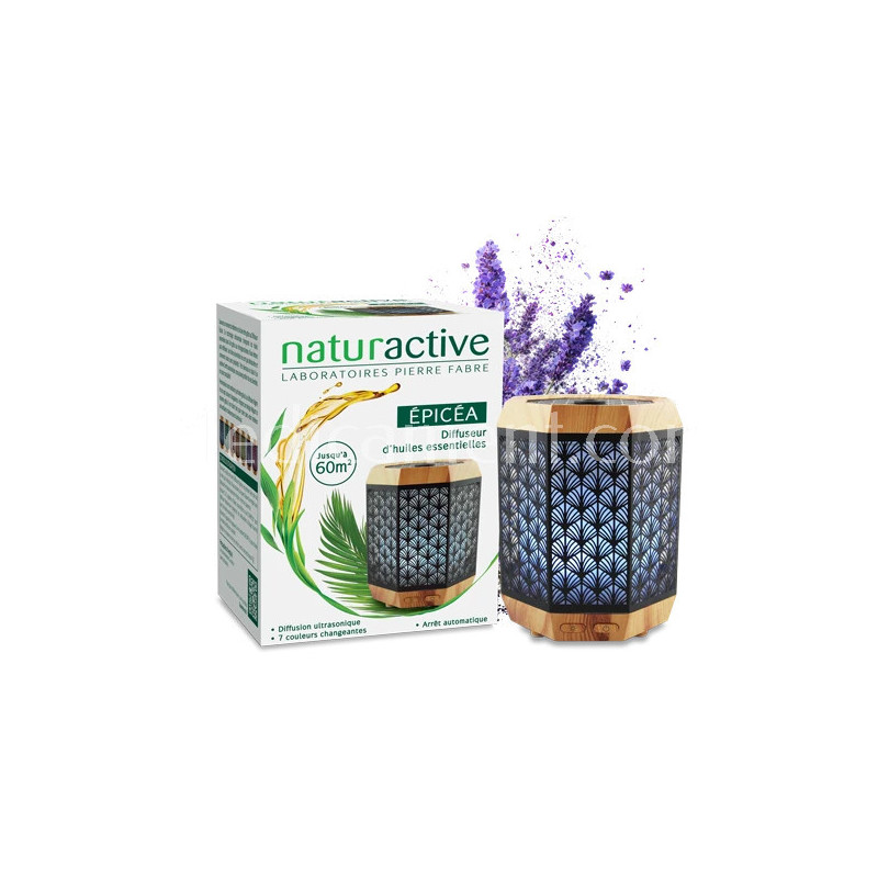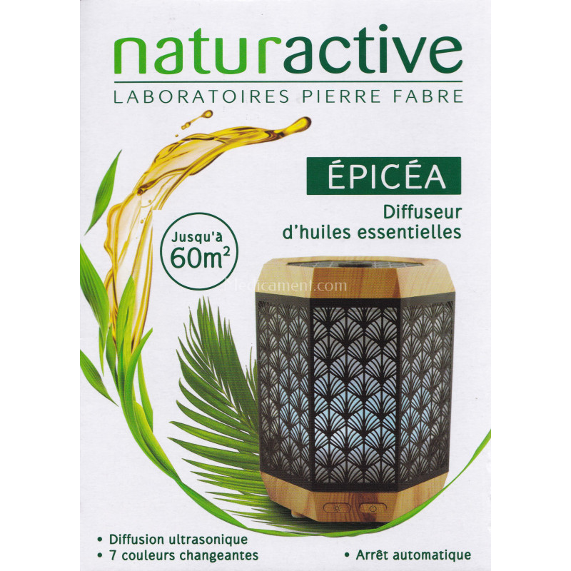 Le diffuseur d'huiles essentielles Epicea du laboratoire Naturactive offre une diffusion de vos huiles essentielles sur une surface de 60 m² grâce à sa technologie ultrasonique. Les huiles essentielles sont diffusées sous forme de micro-gouttelettes, sans être chauffées, et gardent ainsi toutes leurs qualités thérapeutiques et odorantes.