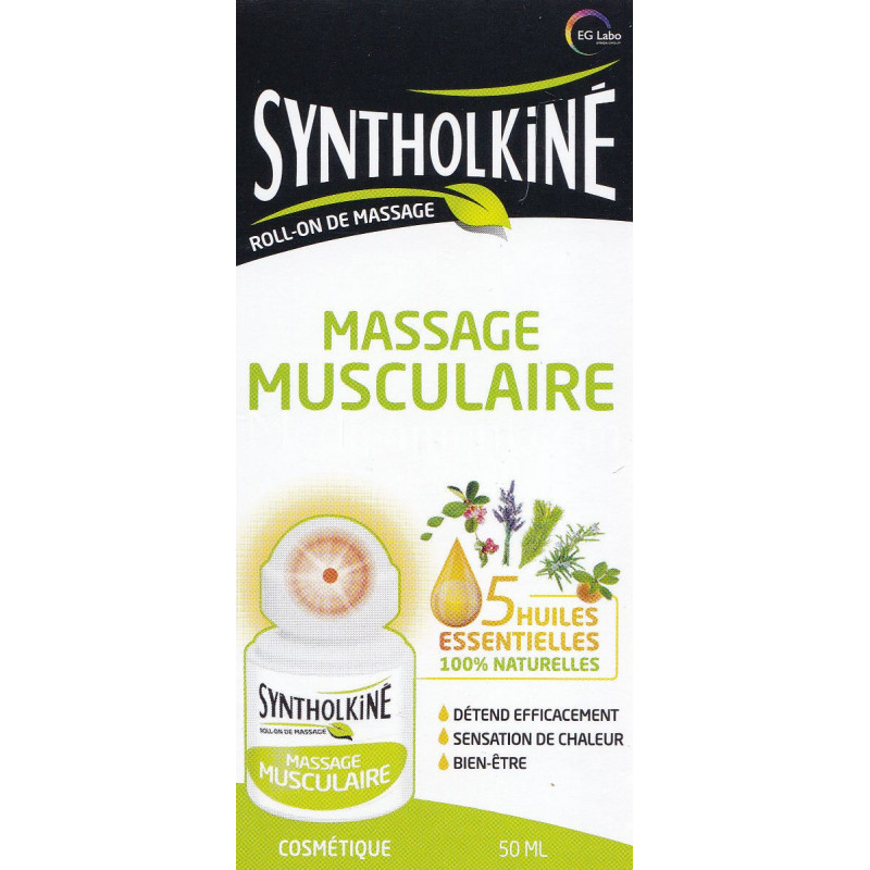 Avec sa bille de massage, Syntholkiné Roll-on permettra de décontracter les muscles grâce à une sensation agréable d'échauffement et l'action synergique de 5 huiles essentielles aux propriétés relaxantes en cas de tension musculaires :
