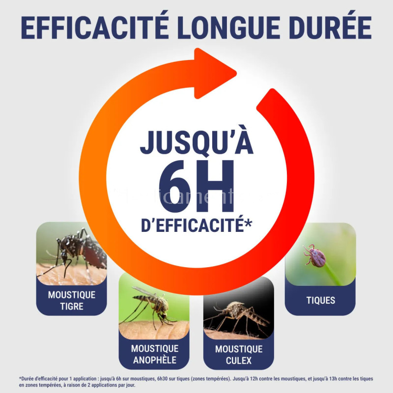 Applicable directement sur la peau et/ou sur les habits car presque la moitié des piqûres interviennent au travers des tissus.