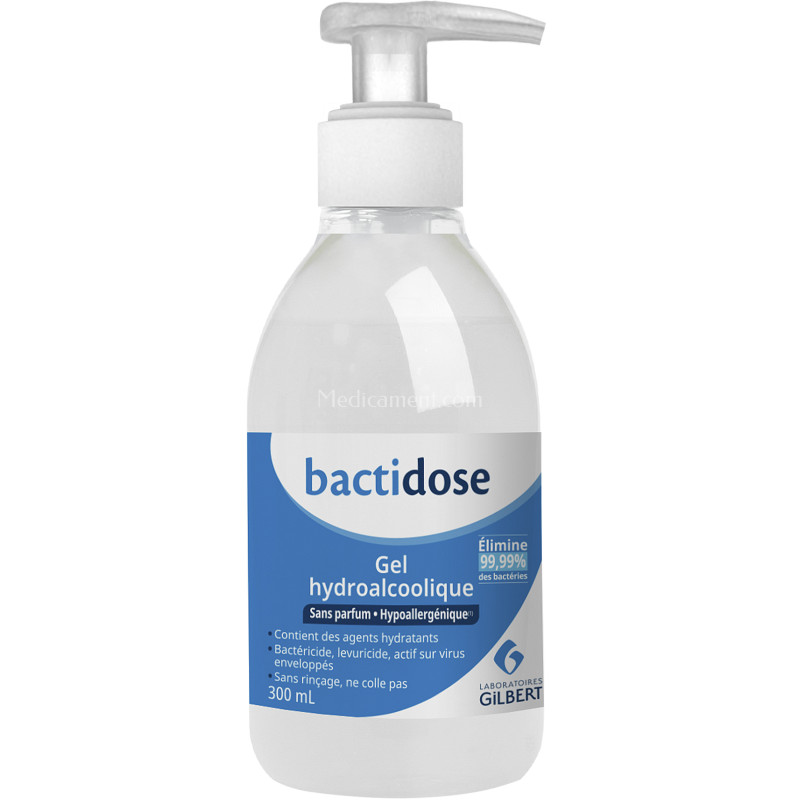 Le gel main hydroalcoolique Bactidose permet une désinfection des mains rapide et sans rinçage tout en ne desséchant pas la peau grâce à ses agents hydratants.