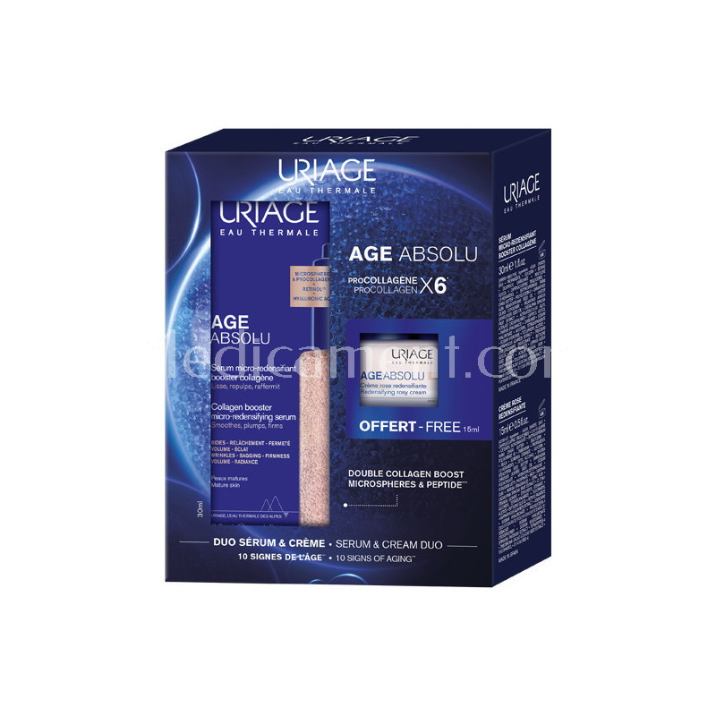 Le Sérum micro-redensifiant de la gamme Age absolu d'Uriage agit sur les 10 signes de l'âge : rides, relâchement, perte de fermeté, de volume, de densité et d’élasticité, sécheresse, manque d’éclat, taches, manque de confort.