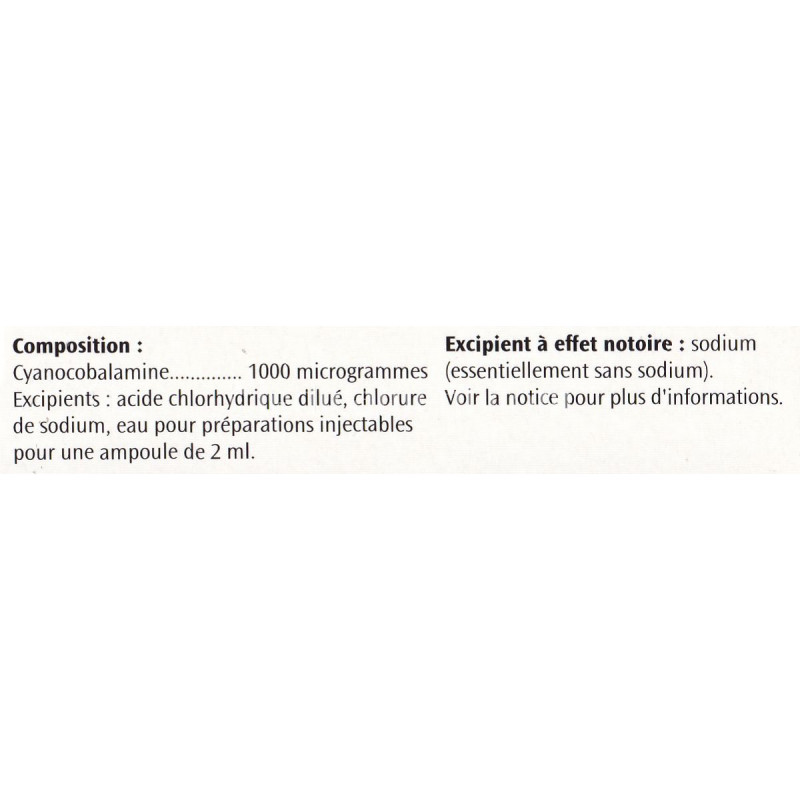 Substance active pour 1 ampoule (2 ml) : Cyanocobalamine 1000 µg