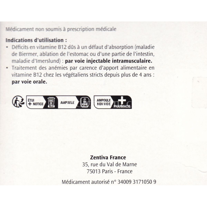 Traitement des déficits en vitamine B12 (IM) :