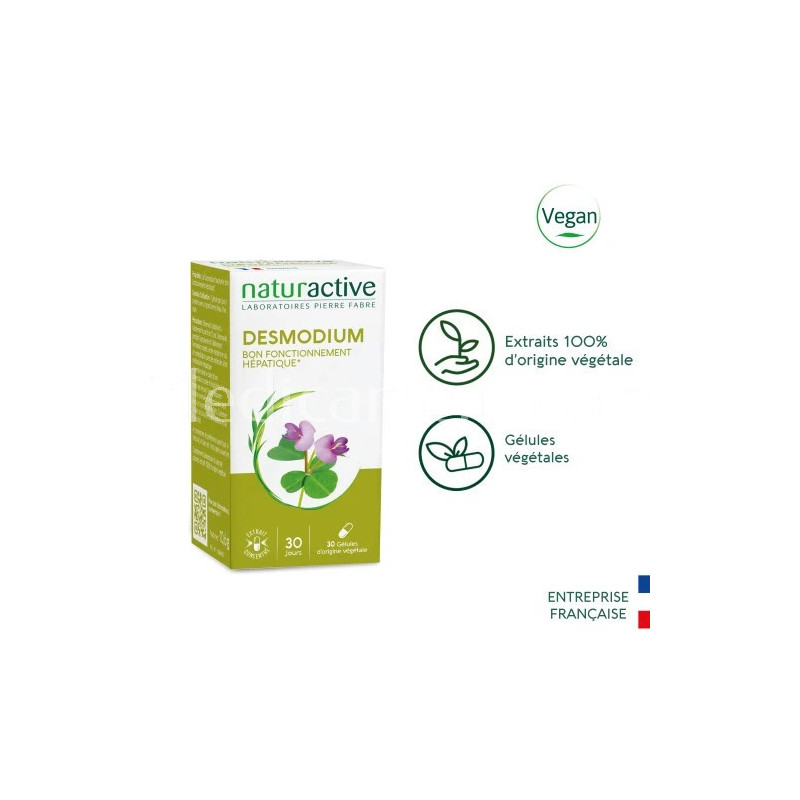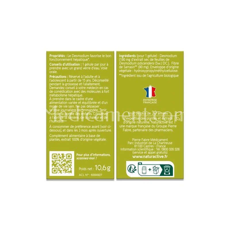 Dosage pour 1 gélule : 190 mg d'extrait sec concentré de feuilles de Desmodium.