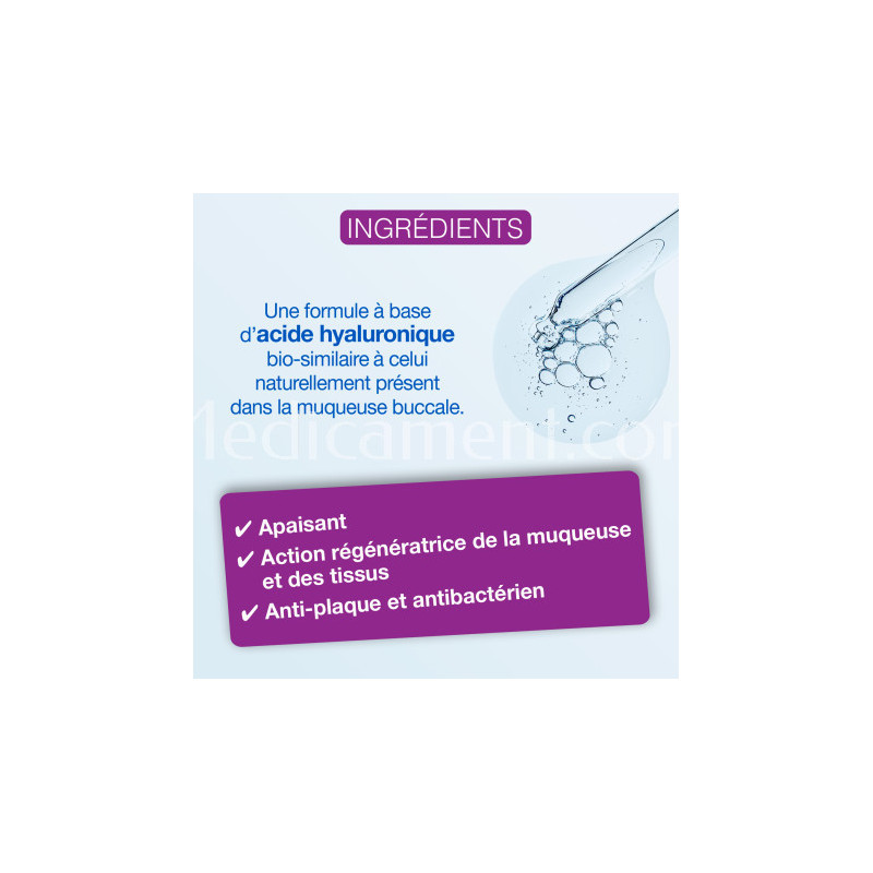 Apaise et protège la muqueuse buccale et les gencives sensible avec l'Acide hyaluronique.