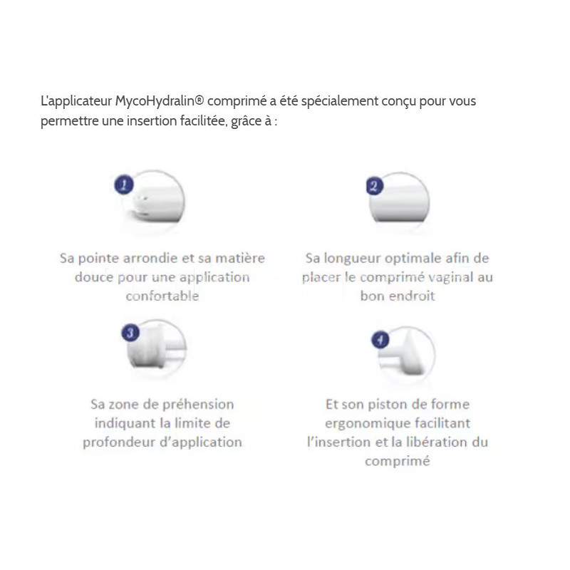 La boîte contient trois comprimés vaginaux ainsi un applicateur pour faciliter l’introduction si nécessaire.
