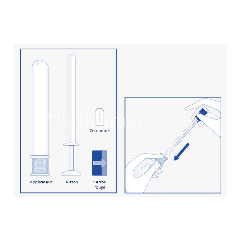 Utilisez l’applicateur pour introduire le comprimé aussi haut que possible dans le vagin de préférence le soir au coucher. Démonter et nettoyer soigneusement l'applicateur à l'eau chaude entre chaque emploi.