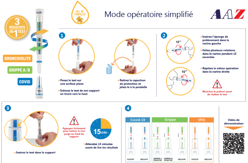 Détecte 3 infections : COVID + Grippe + Bronchiolite Vrs