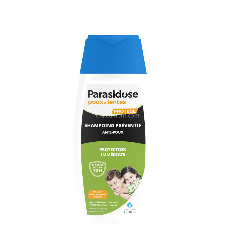 Le traitement préventif Parasidose poux & lentes a été spécialement développé pour prévenir l’infestation de ces parasites capillaires : les poux, aussi appelés Pediculus humanus. En utilisant ce shampooing préventif, vous pouvez réduire considérablement les risques d'installation de ce parasite capillaire pendant 72 heures pour l'ensemble de la famille dès 1 an ! Son efficacité immédiate à la première utilisation, ce shampoing doux peut remplacer votre shampoing quotidien.
