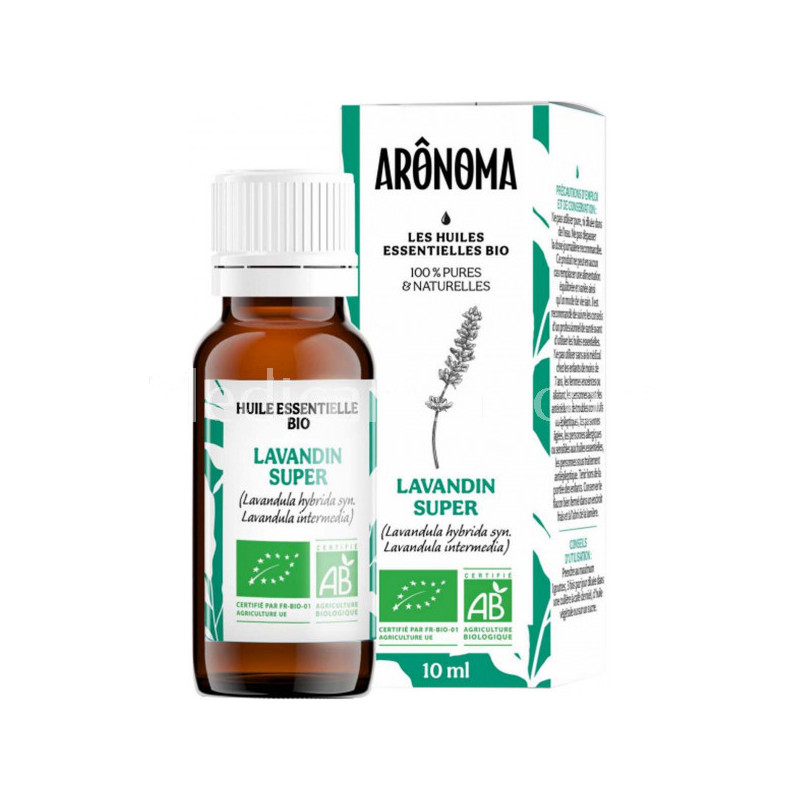 Arônoma Lavandin super est une huile essentielle de qualité, 100 % pure et naturelle, d’origine et de chémotype contrôlés, de dénominations HEBBD (Huile Essentielle Botaniquement et Biochimiquement Définie).