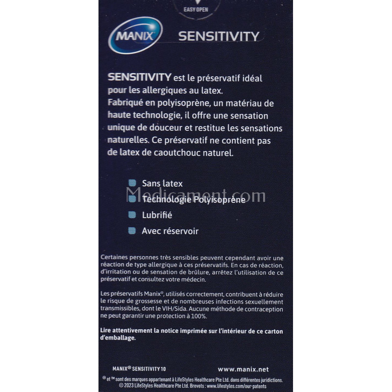 SENSITIVITY est le préservatif idéal pour les allergiques au latex car ne contient pas de latex de caoutchouc naturel. Il est fabriqué en polyisoprène, un matériau de haute technologie quioffre une sensation unique de douceur et restitue les sensations naturelles.