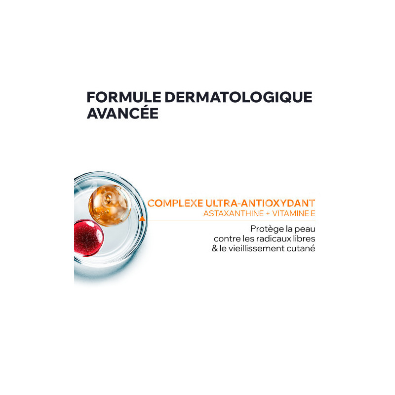 • Astaxanthine : le plus puissant antioxydant naturel qui protège les membranes cellulaires après une exposition aux UV.