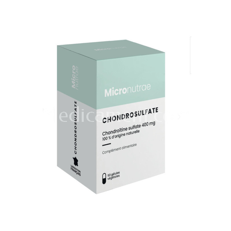 Complément alimentaire à base de chondroïtine (poisson). Réservé à l"adulte. Déconseillé aux personnes diabétiques, prédiabétiques, asthmatiques, traitées par anti-vitamine K ou suivant un régime avec apport contrôlé en sodium, potassium et calcium. Déconseillé aux femmes enceintes ou qui allaitent.